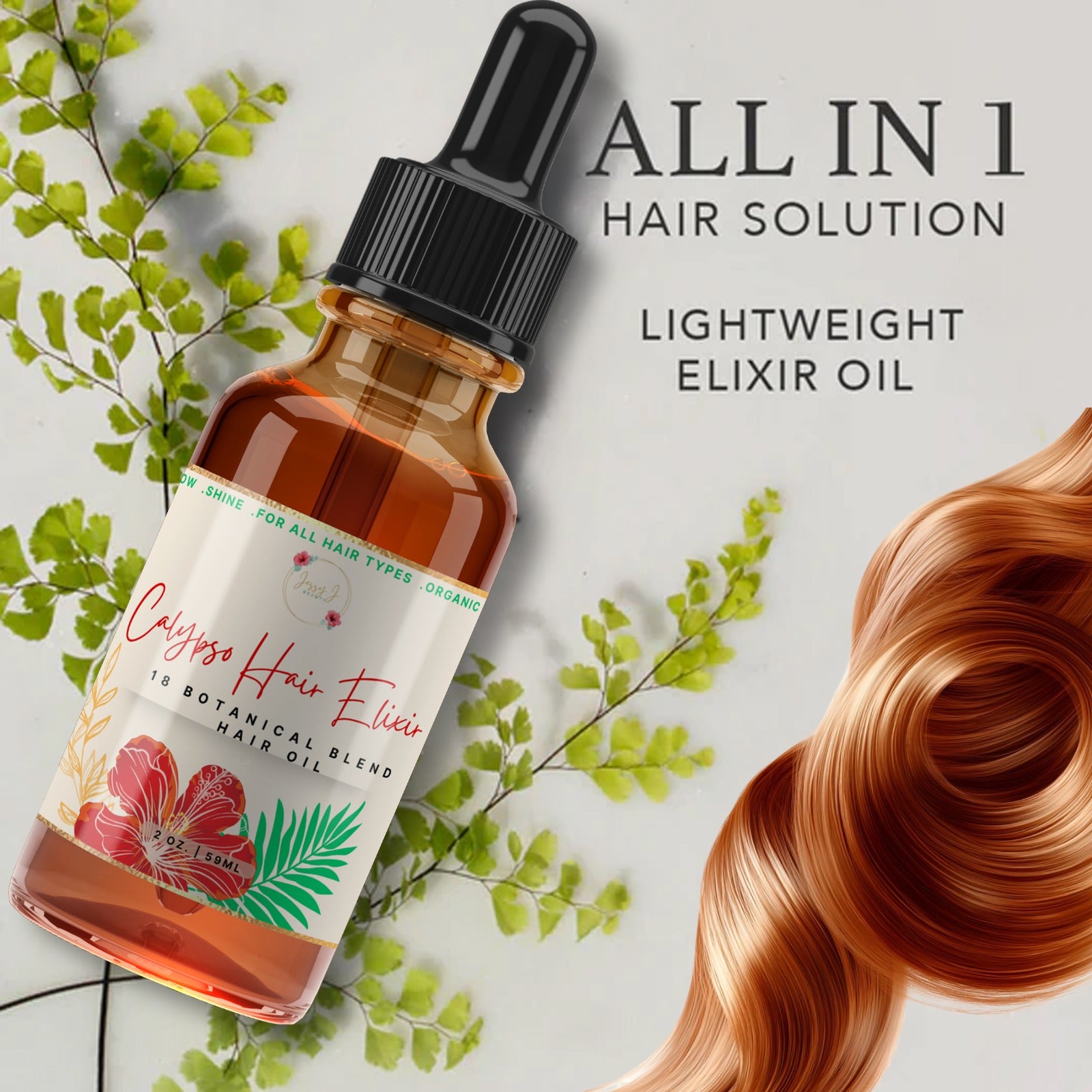Calypso Hair Oil is a luxurious 18-botanical blend crafted to restore, strengthen, and beautify